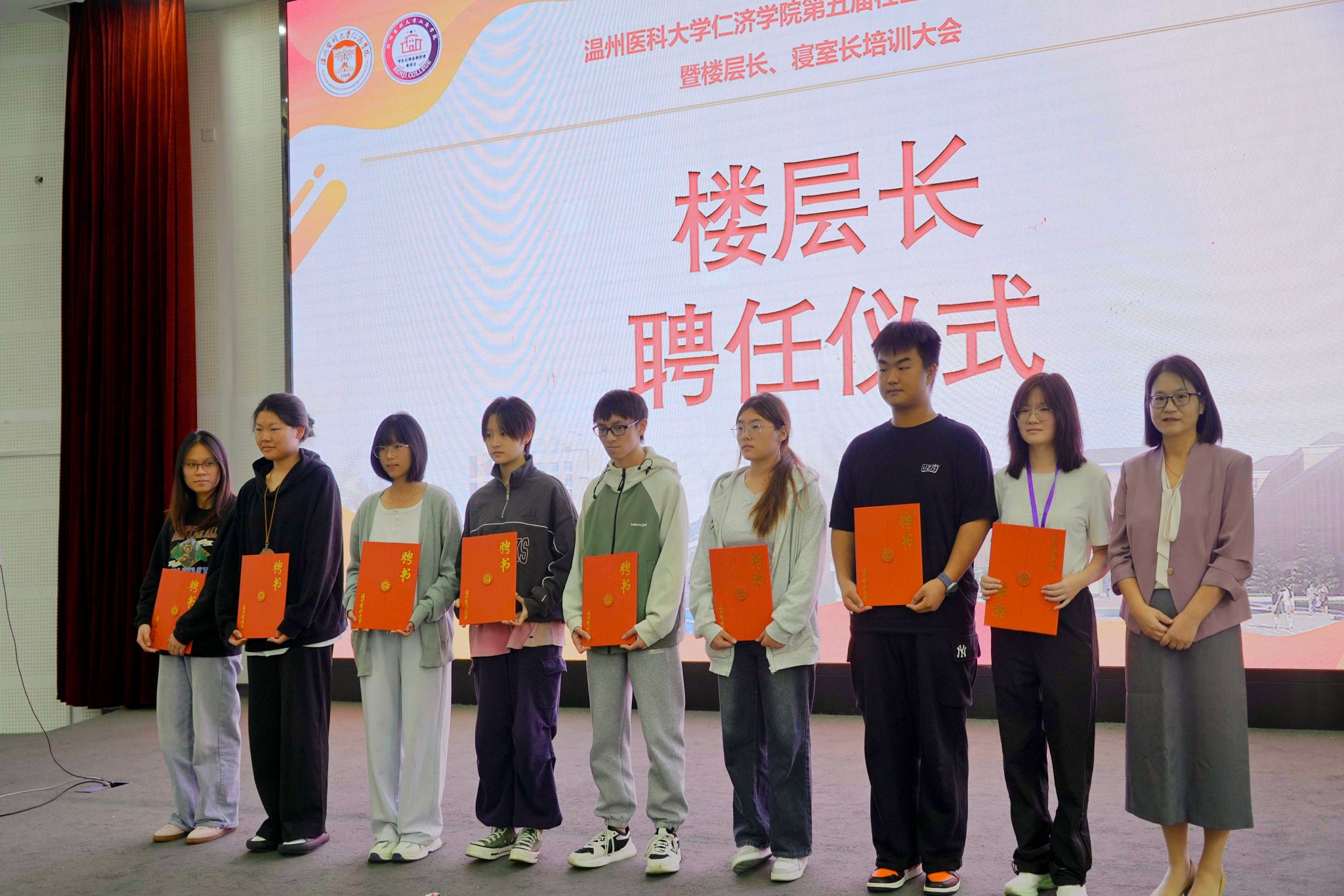 为深入营造宜居宜乐、健康向上的学生社区氛围,加强新任楼层长、寝室长队伍建设,中文av-在线av-丝袜av 于2025年11月9日下午,在滨海校区仁心厅隆重举行第五届社区文化节开幕式暨楼层长、寝室长培训大会。中文av 党委副书记姜旭英、学生工作办公室副主任卢雪、相关负责老师与全体楼层长、寝室长共同参会。本次会议由自管会指导老师李宗恒主持。