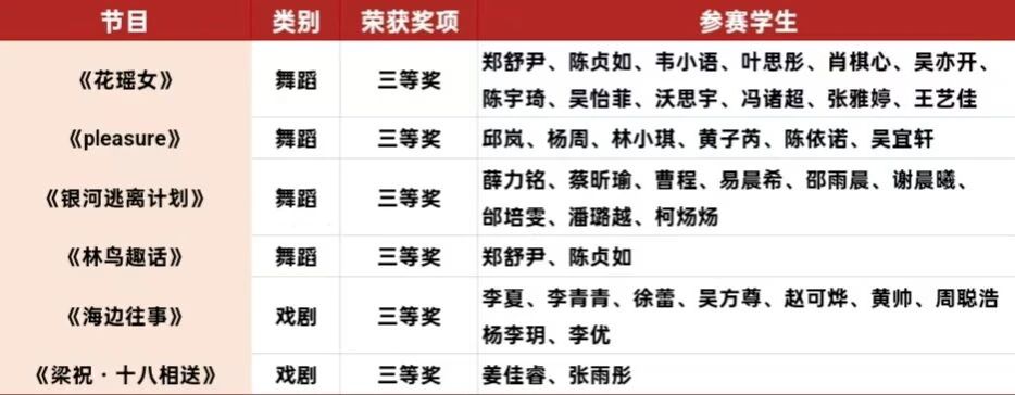 2025 年浙江省大学生艺术节赛事结果正式公布,中文av 学子凭借深厚的艺术素养与积极向上的精神风貌,在众多参赛作品中脱颖而出,一举斩获六项省级三等奖,为中文av 赢得荣誉。其中,舞蹈类作品《花瑶女》《林鸟趣话》《银河逃离计划》《Pleasure》、戏剧类作品《海边往事》《梁祝・十八相送》成功获奖,充分展现了中文av 美育工作的丰硕成果。