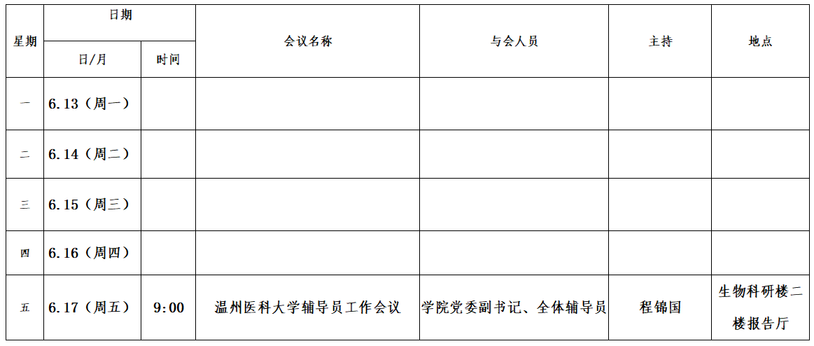 第十七周会议安排